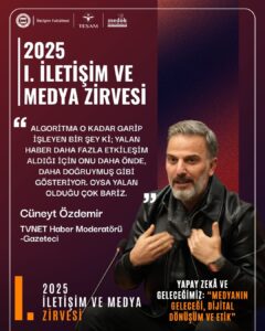 Zirvenin en dikkat çekici oturumlarında dezenformasyon ve yeni nesil medya araçları tartışıldı. Cüneyt Özdemir, dijital platformlardaki algoritma yapısının yalan haberi daha fazla etkileşim nedeniyle ön plana çıkardığını belirterek, “Hakikat, dijital algoritmaların arasında kaybolma riskiyle karşı karşıya,” uyarısında bulundu. Gazeteci Ceyhun Bozkurt ise bu görüşü destekleyerek, gazeteciliğin taraf olmaktan öte “hakikatin savaşçısı olmak” olduğunu vurguladı.