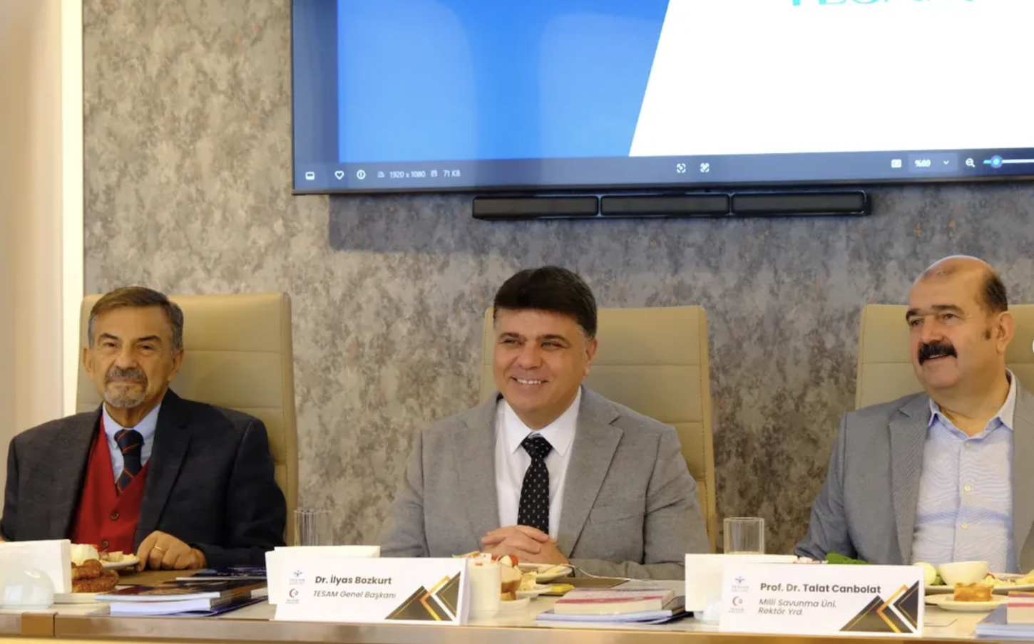 Toplantı, TESAM ve TESİAD Kurucu Genel Başkanı İlyas Bozkurt başkanlığında gerçekleştirildi ve verimli istişarelerin ardından toplu aile fotoğrafı ile sona erdi.