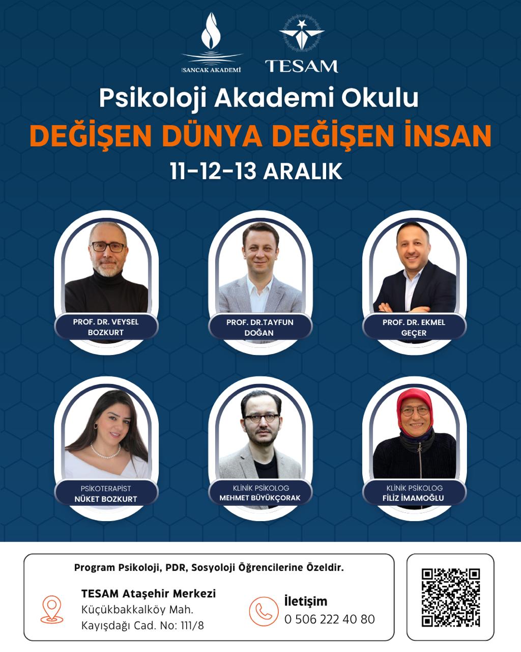 TESAM Psikoloji Akademi Okulu, “Değişen Dünya, Değişen İnsan” temasıyla 11–12–13 Aralık tarihlerinde İstanbul’da gerçekleştirilecek. Program, dijital dönüşüm ve küreselleşme çağında insan davranışını bilimsel bir perspektifle anlamaya davet ediyor.